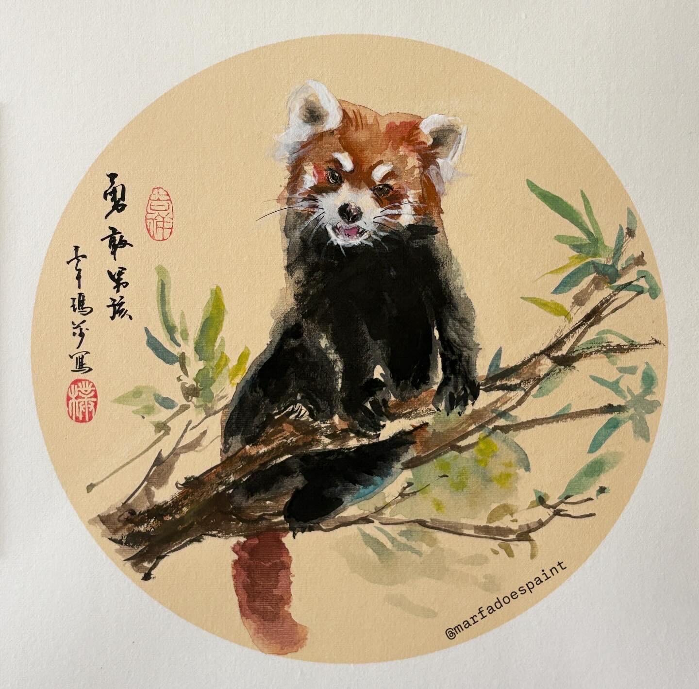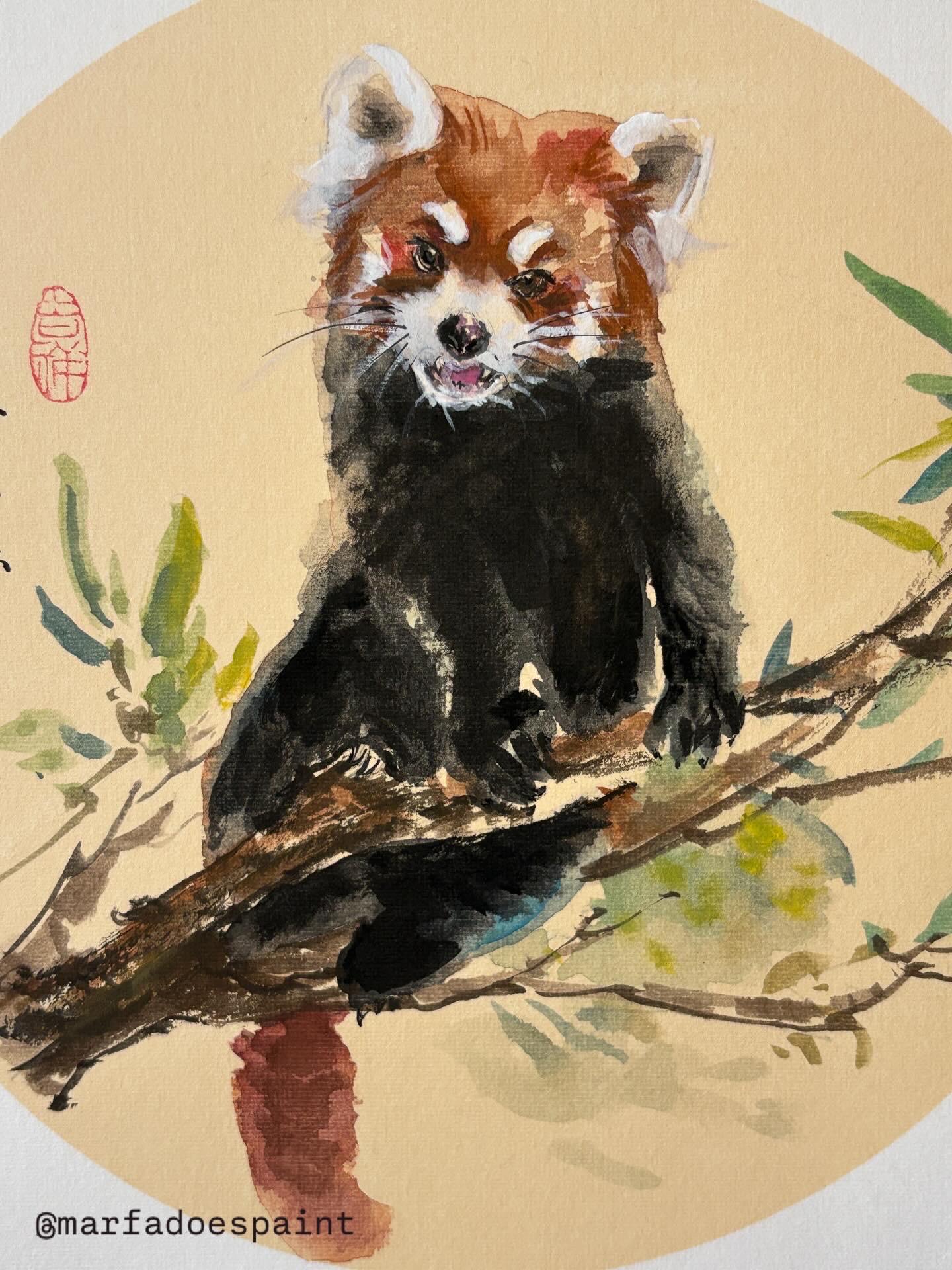 A custom made commision of red panda. It is done in chinese ink paints on cooked rice paper 33x33 cmDM me for details.Different options of shipment are available.