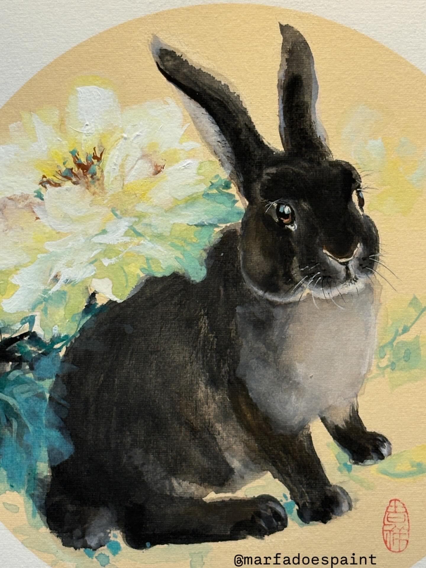 Make a valuable gift or a warm memory. I loved painting this otter rex rabbit. 33x33 cm chinese ink paints on rice paper.Different delivery options are available. Please contact me for details.